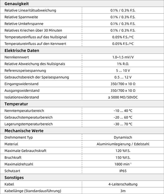 Dynamischer Drehmomentsensor, Konstruktion aus Aluminiumlegierung oder rostfreiem Stahl