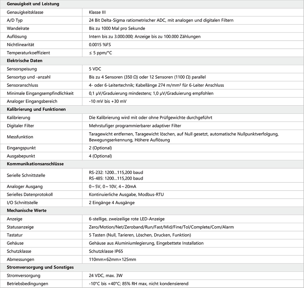 ● Mehrere Ausgangsschnittstellen verfügbar: RS232, RS485, Analog, E/A-Anschluss