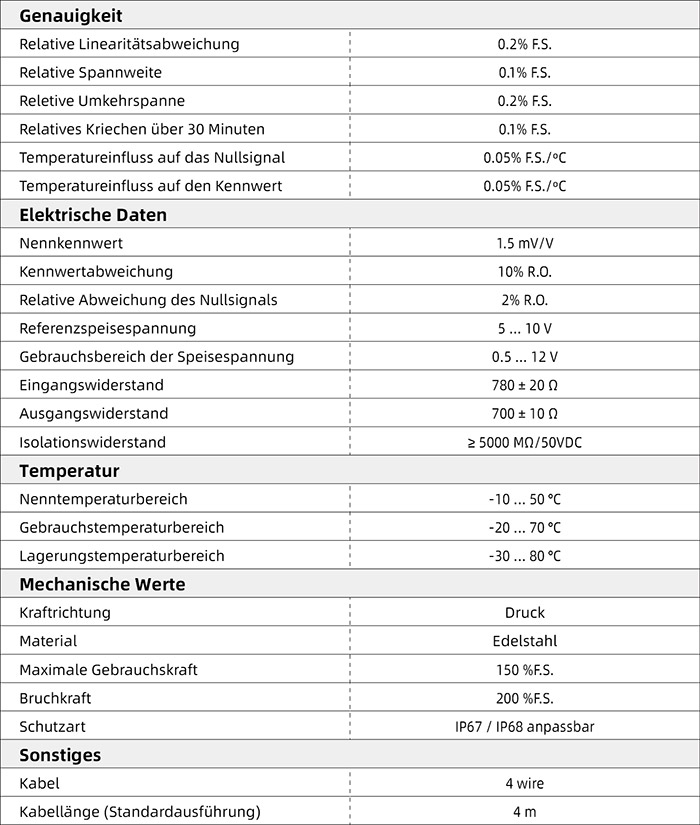 Druckkraftsensor, Konstruktion aus rostfreiem Stahl