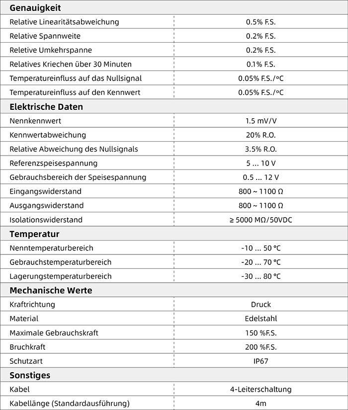 Druckkraftsensor, Konstruktion aus rostfreiem Stahl