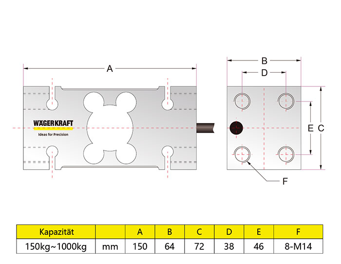 Single-Point-Wägezelle, Konstruktion aus legiertem Stahl