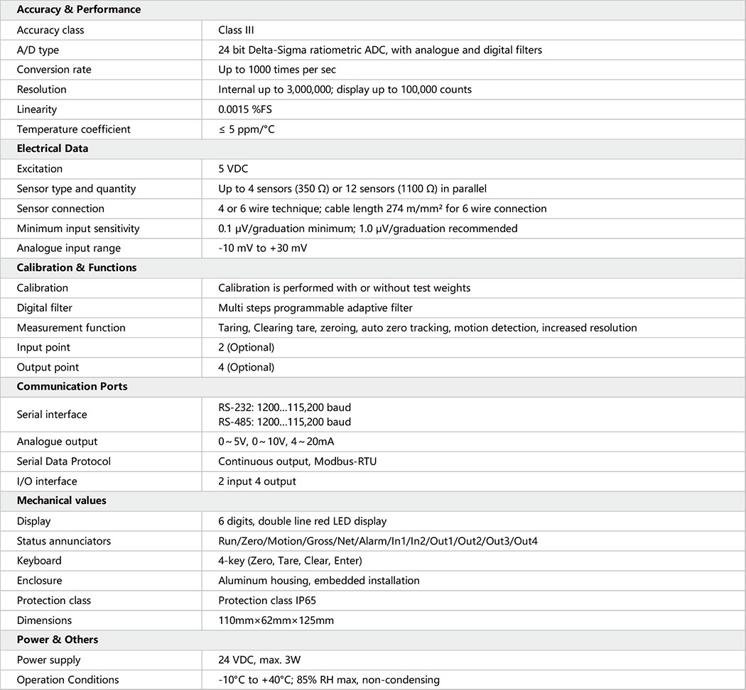 ● Multiple output interfaces available: RS232, RS485, Analog, I/O port
