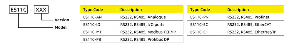 RS232, RS485, Analogue, I/O ports, Modbus TCP/IP, Profibus DP, Profinet, EtherCAT, EtherNet/IP