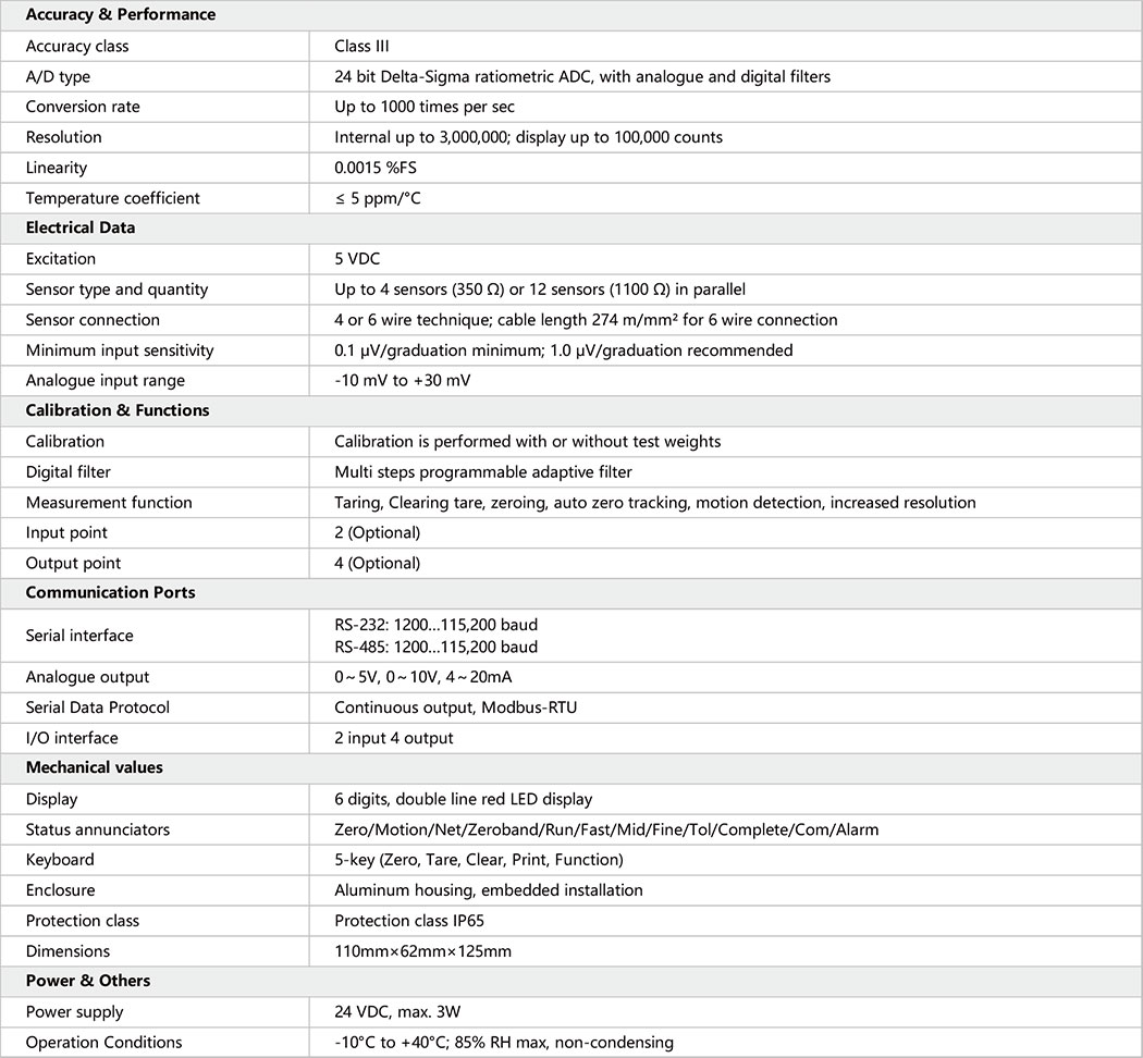 ● Multiple output interfaces available: RS232, RS485, Analog, I/O port