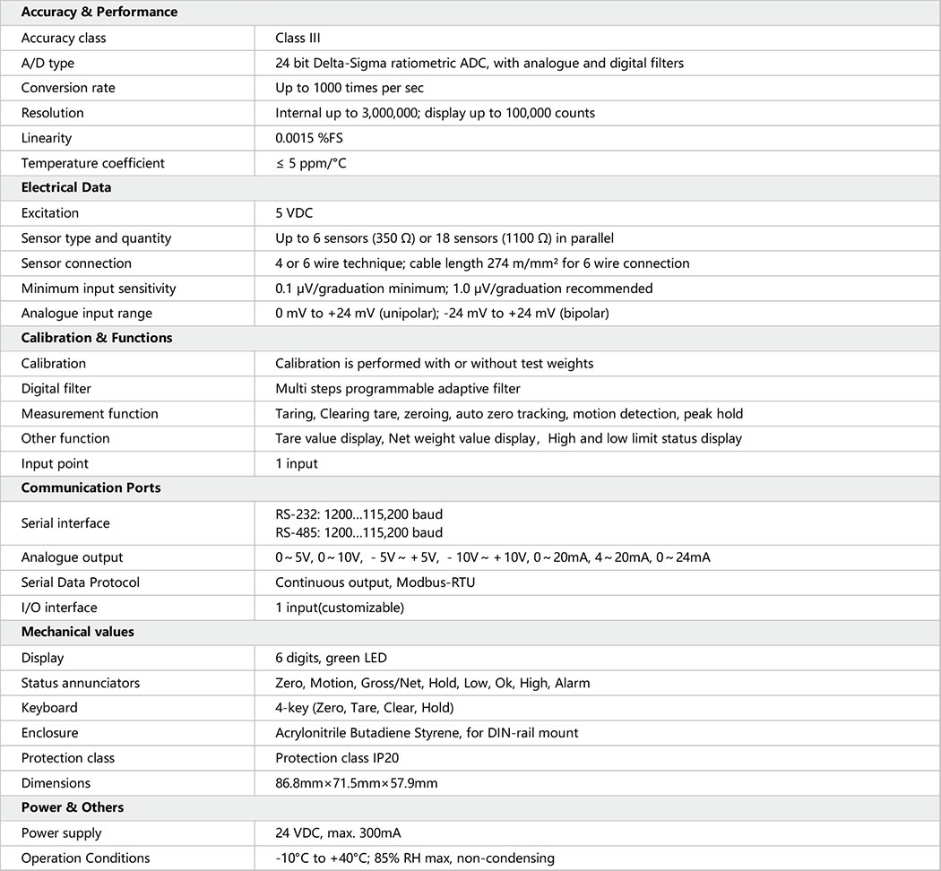 ● Multiple output interfaces available: RS232, RS485, Analog, I/O port