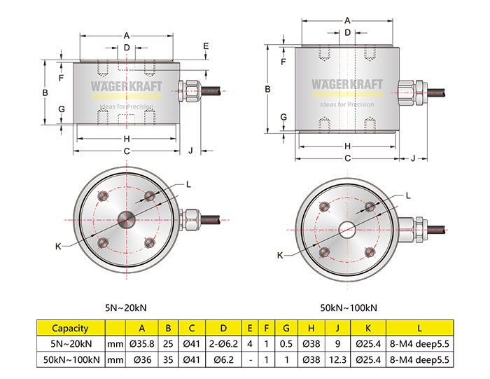 5N / 10N / 20N / 30N / 50N / 100N / 200N / 300N / 500N / 1kN / 2kN / 3kN / 5kN / 10kN / 20kN / 50kN / 100kN