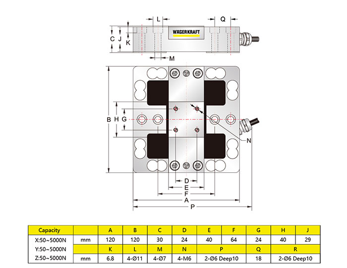 3-Axis Force Sensor, aluminum alloy or stainless steel construction