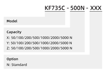 X: 50 / 100 / 200 / 500 / 1000 / 2000 / 5000 N